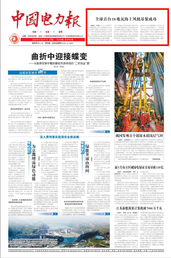 [中國電力報]全球首臺18兆瓦海上風(fēng)機吊裝成功