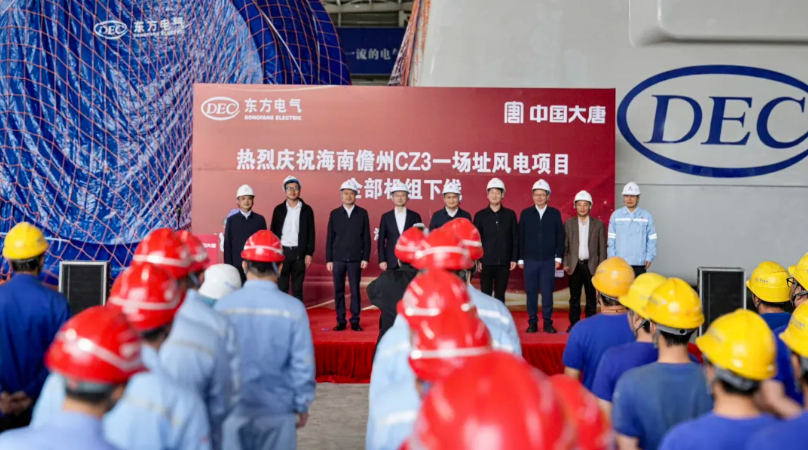 洋浦管委會副主任張勇軍出席下線儀式并致辭,他表示,東方電氣、中國大唐、儋州市政府精誠合作,攻堅克難,圓滿完成了既定的開發(fā)建設(shè)任務(wù)。該項目全部機組下線,標(biāo)志著海南儋州的海上風(fēng)電開發(fā)建設(shè)邁出了堅實的一步。